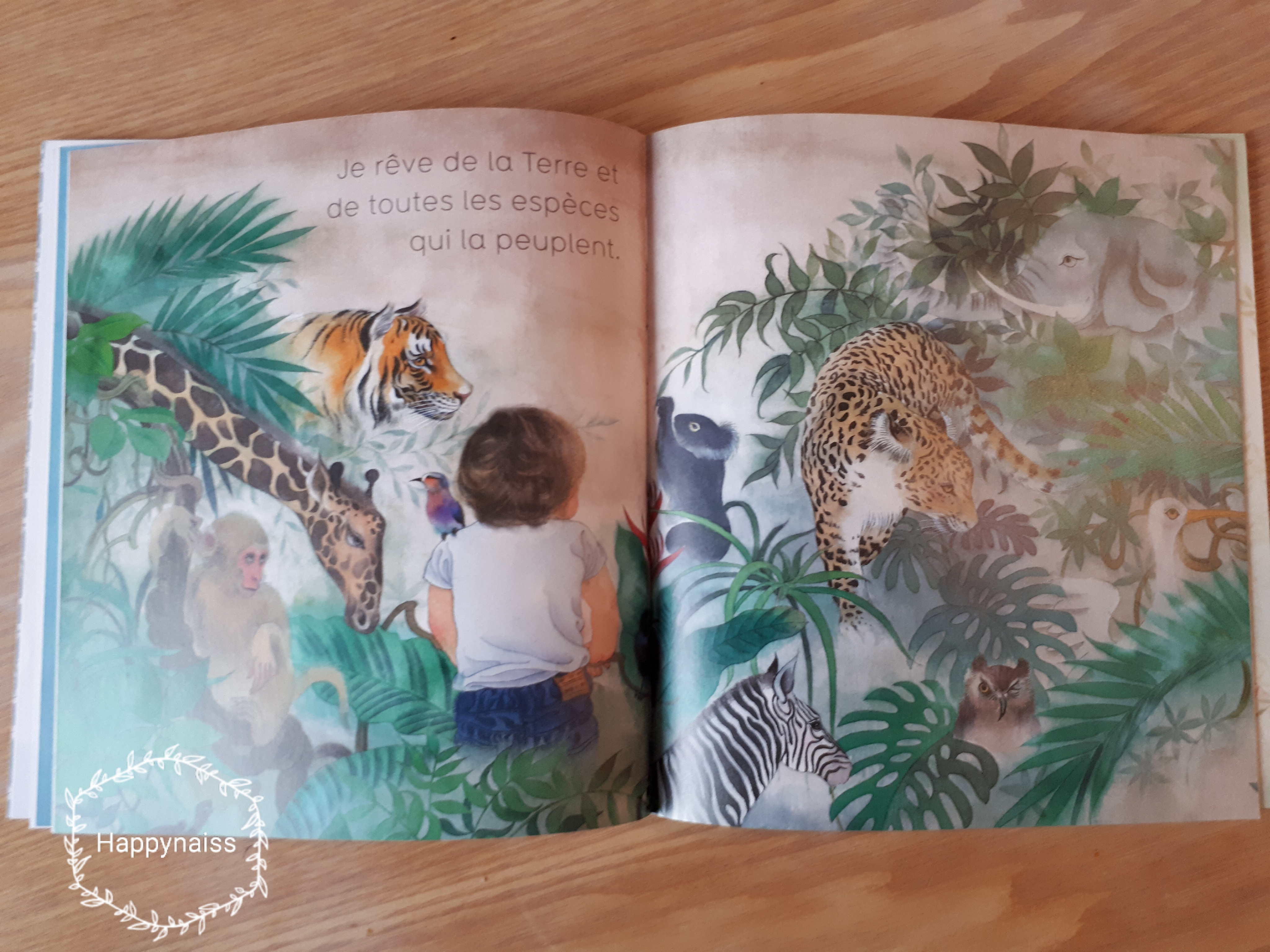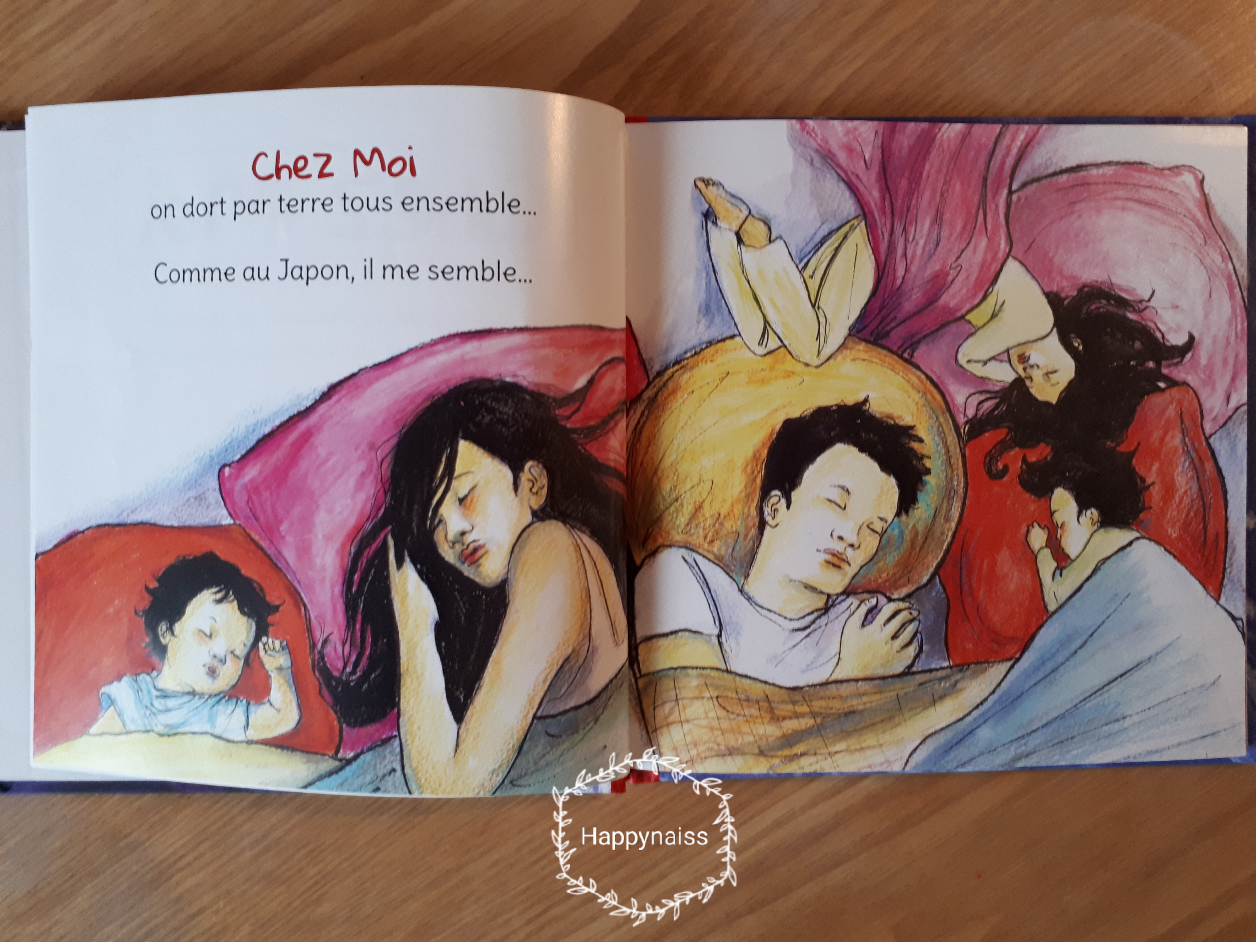 C’est un livre magnifique, avec des illustrations réalisées à la peinture sur soie vraiment splendides, des images et des textes poétiques et doux qui nous amènent à visiter les rêves et les sens des bébés : voler dans le ciel, nager, caresser un panda…C’est une œuvre d’art, cet album. Un vrai cadeau précieux qu’elle a choisi pour nous.