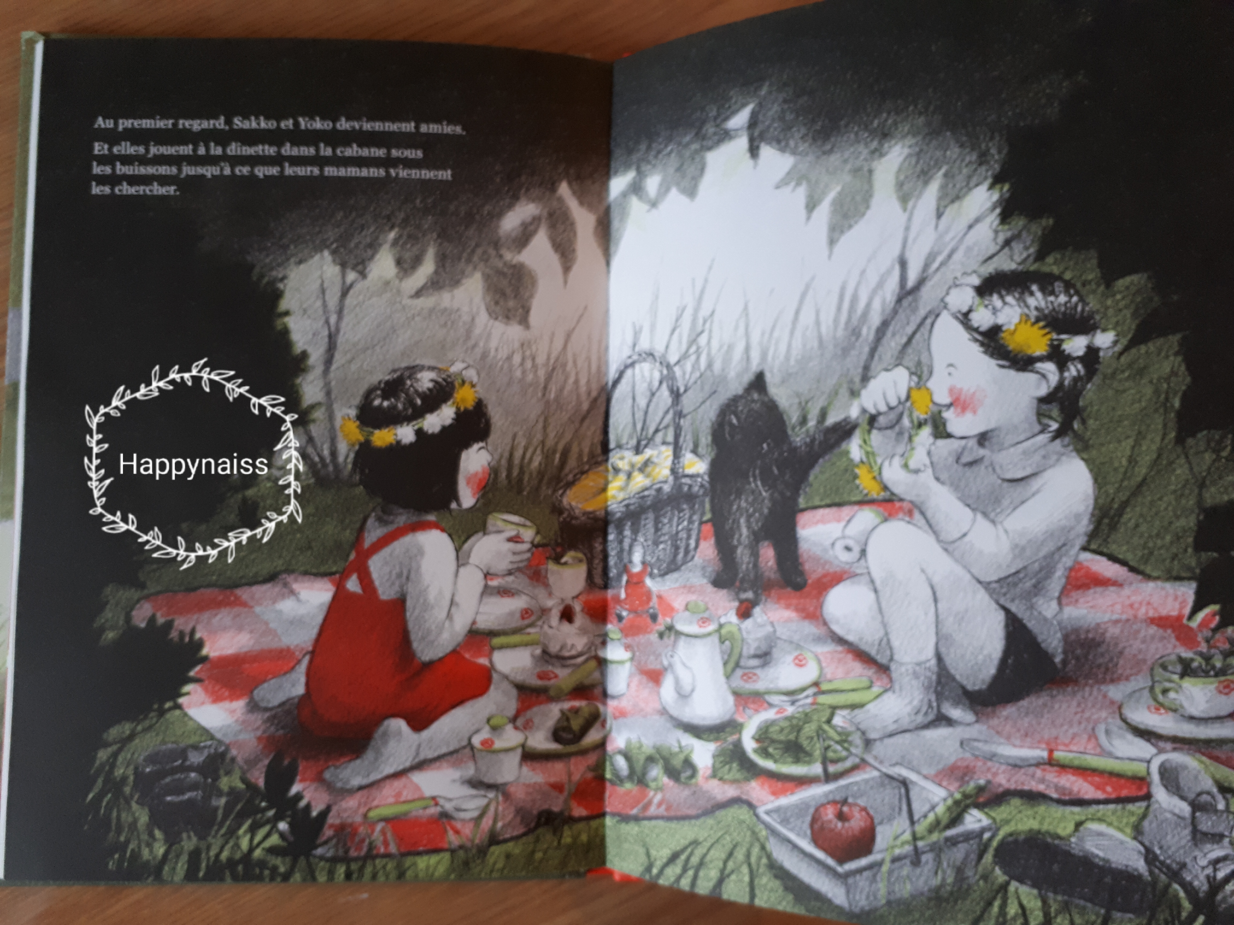 Ce livre est devenu le hit number one de ma Carrousel : il faut dire qu’il concentre tout ce qui est susceptible de lui plaire : deux petites filles, une cabane, des fleurs colorées, des surprises, des biscuits et une dînette ! Et surtout, des valeurs qui lui correspondent bien : faire plaisir à l’autre, partager, cultiver l’amitié…