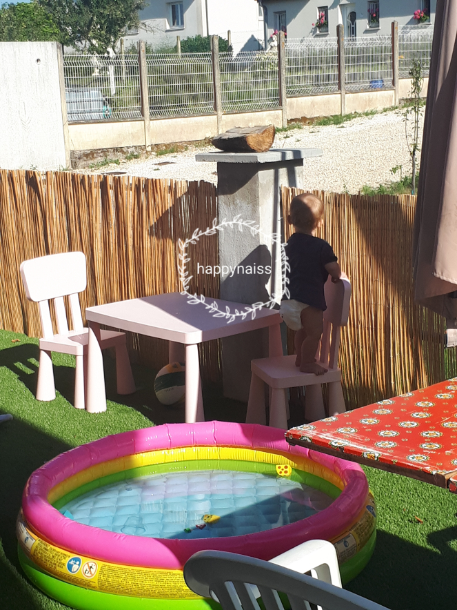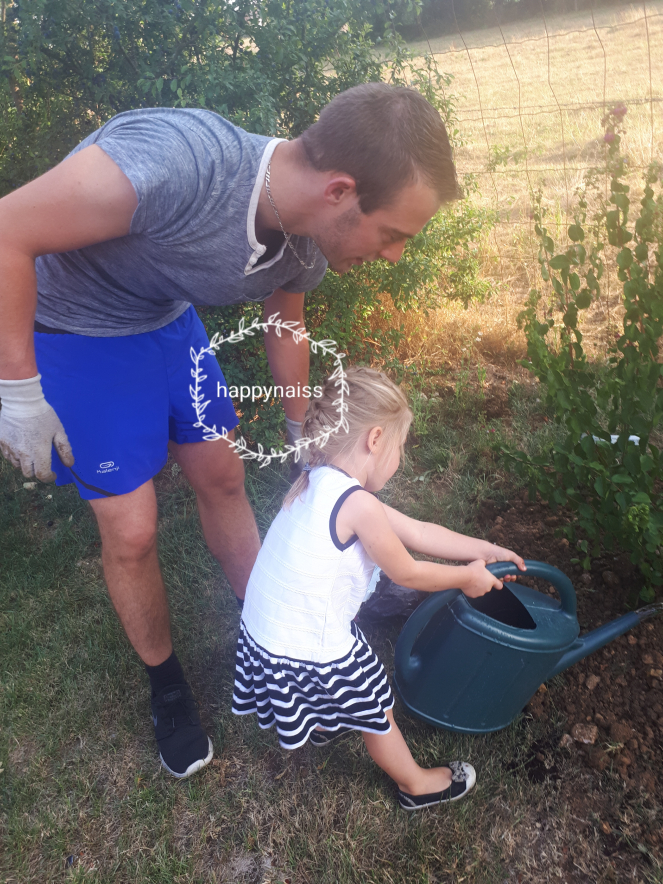 A l’occasion de cette première année riche et intense, ce soir on a planté « ton » arbre dans le jardin, avec en dessous, comme fertilisant, le placenta qui t’a permis de grandir dans mon ventre. On tenait absolument à faire la plantation le jour de ton anniversaire, alors nos choix en matière d’arbre ont été réduits : on a finalement opté pour un Lilas. Un lilas des indes, dont la floraison est à l’été (alors que le Lilas classique fleurit au printemps), comme toi. En plus, le lilas m’évoque une amie très forte, une âme belle et généreuse qui est source d’inspiration pour moi, alors je pense que c’est un bon présage pour toi ma Fusée. Et si un jour la maison est vendue, on pourra toujours faire un bouture du Lilas et l’emporter avec nous vers d’autres horizons. En attendant, il va grandir en même temps que toi…