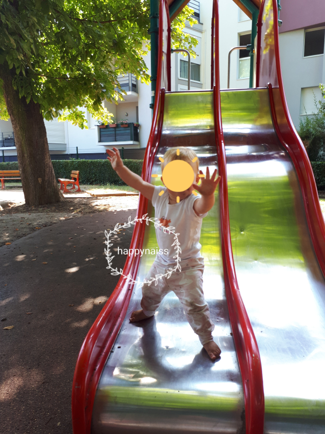 A peine à quelques semaines, tu cherchais comment faire pour te tourner et te retourner : à 4 mois, c’était acquis. Très vite tu roulais-boulais dans toute la pièce pour te déplacer et explorer. Tout attraper, tout goûter, tout découvrir. Tu avais à peine trouvé le ramping en avant, que tu commençais le 4 pattes. Tu découvrais tout juste le 4 pattes et déjà tu te hissais debout, escaladais et grimpais les escaliers. En une semaine, tu as appris à descendre du canapé ou du lit de façon sécuritaire et c’est un régal de te voir appréhender l’espace et le vide en autonomie. A peine debout, te voilà à marcher en t’appuyant sur tout ce que tu trouves : la poussette des poupées, la coccinelle, un carton qui traîne,la trotinette de ta soeur. En un rien de temps, ton équilibre s’améliore et tu t’amuses à te lâcher et à tester ton équilibre. Ton jeu préféré du moment ? Te hisser debout à la force de tes muscles, sans appui, et crier « egade!!!! » (regarde) avec un cri de joie. Puis te jeter en arrière, morte de rire. Le meilleur spot pour faire ça ? Sur un toboggan, après l’avoir remonté à l’envers et l’avoir dévalée hilare. Tu aimes vivre dangereusement. Et moi j’ai passé un nouveau cap dans la confiance que j’accorde à l’enfant pour gérer son développement et sa sécurité. Il y a une semaine, tu étais accrochée au canapé et tu as fait quelques pas toute seule, sans appui, sans aide, sans qu’on t’appelle, sans prévenir personne. Heureusement que Papa Ours était là et t’as vue, moi j’ai loupé ça, j’étais en haut en train de ranger du linge (-_-). Tu es insatiable de mouvements, de progrès et de découverte. Tu ne peux pas rester assise dans ta chaise pour manger, alors tu manges par terre, tu vas et tu viens, à quatre pattes, debout sous la table, en équilibre sur un tabouret, tu vas piquer dans le lave-vaisselle la nourriture dont tu n’as pas voulu dans ton assiette : il n’y a qu’ainsi que tu manges à peu près. On te retrouve toujours perchée à des endroits improbables et ton sourire ravi ne nous laisse pas d’autres choix que de t’encourager, une main pas trop loin, prête à te rattraper, pas trop près pour ne pas t’interrompre. Même quand tu dors, tu bouges, tu te retournes mille fois, tu te retrouves la tête en bas, les pieds en l’air, tu te cognes, tu tombes de ton lit au sol, tu défonces les petits barreaux en bois soigneusement cloués pour toi. Petit oiseau, tu n’as qu’un rêve : voler.
