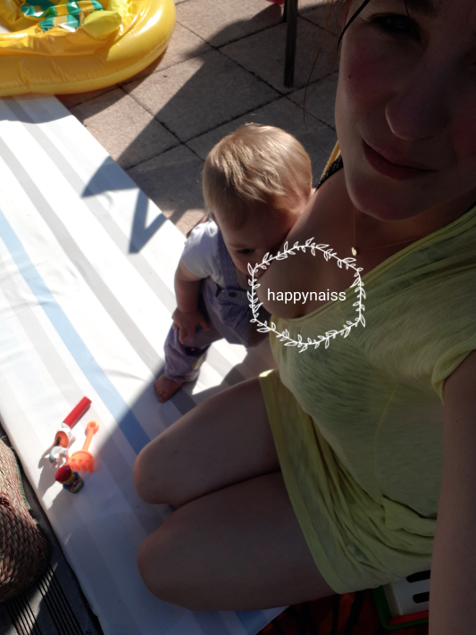 On aurait pu t’appeler bébé-bougeotte tellement tu ne tiens pas en place. Tu n’as jamais su téter calmement : il y a toujours quelque chose de plus intéressant à regarder, à attraper, quelqu’un à rigoler. A un an, les tétées ressemblent plus à un numéro du cirque Pinder qu’à un moment de calme : tu es debout, à genoux, à 4 pattes, sur moi, sous moi, derrière moi. On dirait la pub Materne quand ils ont sorti les compotes à boire : « pomp’potes sans les mains, pom’potes à l’envers, pom’potes sous l’eau… » avec un gamin la tête à l’envers. Finalement, le meilleur moment pour téter reste…la nuit, dans un demi-sommeil, quand il n’y a rien de mieux à faire quoi. -_-